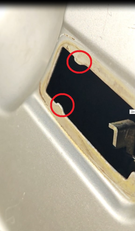 Еще один нюанс: эти ручки держатся только лишь за счёт того, что после установке их в дверь они смещаются в сторону торца двери, так же как родные, в принципе, но эти заходят в пазы на самой ручке выступами на самой двери (обозначены на фото ниже). Кстати, видимо не во всех дверях наших вагов есть эти выступы в двери, так как много видосов есть, как на Гольф2 "колхозят" эти самые выступы, так как родных не предусмотрено.