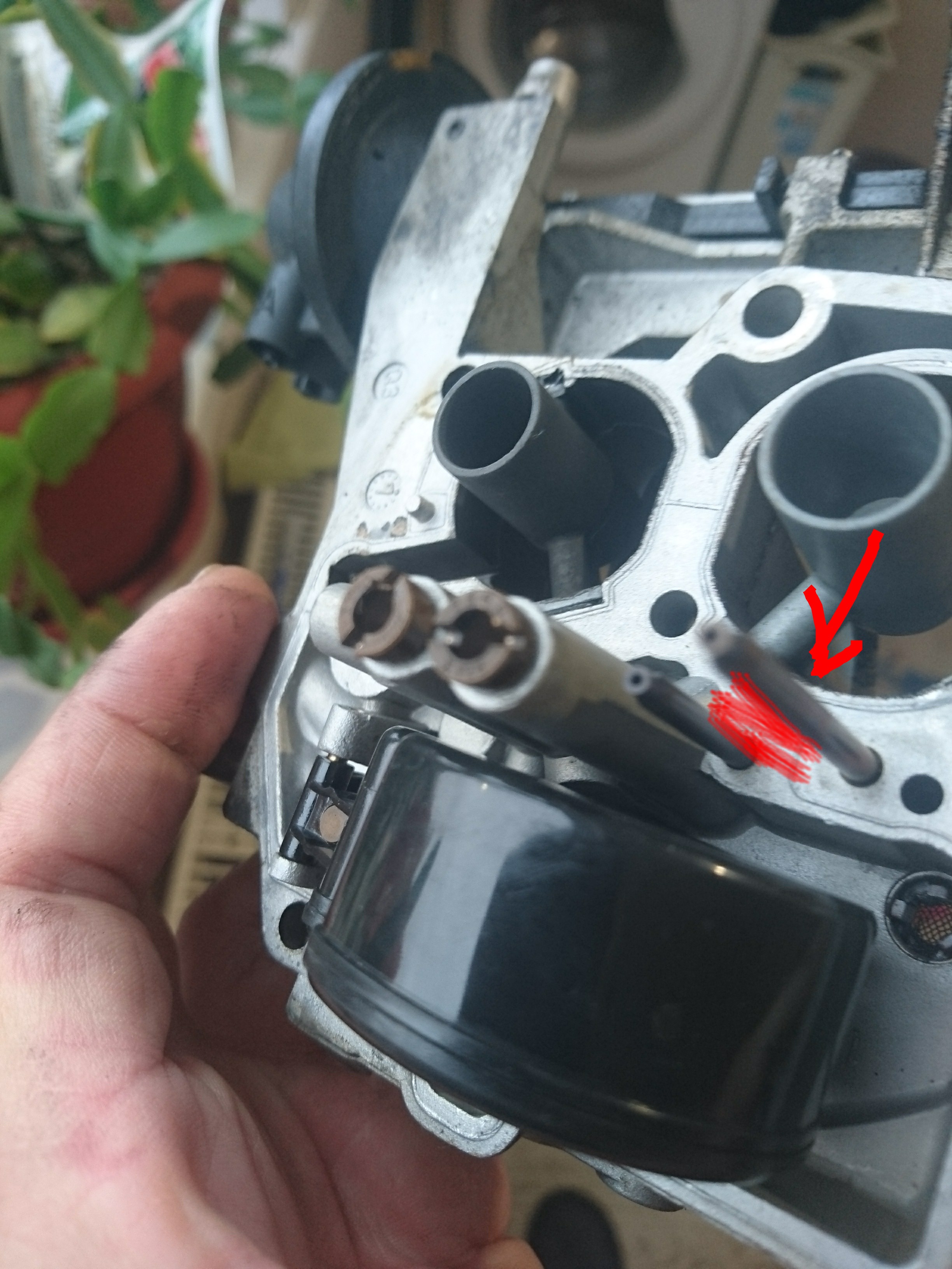 Второй раз я решил что надо сильнее пробрызгать карбклинером, ну мало ли попала куда мусоринкаи не выдулась. И начал затыкать все лишние отверстия и пшикать и смотреть через какие выходит и вот при закрытии пальцем этой длинной трубки с конца я офигел, - она была лопнута повдоль. Была микро щель мм12 и от туда сифонило как факел флаг такой получился из очистителя карбюратора. Вот от туда и сосало лишний бензин. Естественно при продувке просто воздухом я бы всё это не увидел. Так что вот такое бывает.